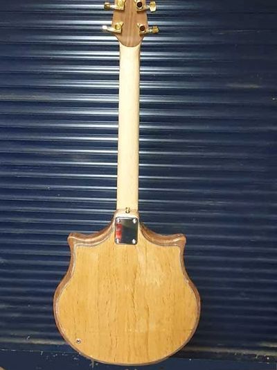 The prototype has a mahogany skeletal hollow body with a thin cedar of lebanon front and back. In the soundhole position it is fitted with a round magnetic pickup designed and constructed in-house. whilst the under saddle piezo pickup is controlled by the Fishman EQ preamp cut into the cedar top.